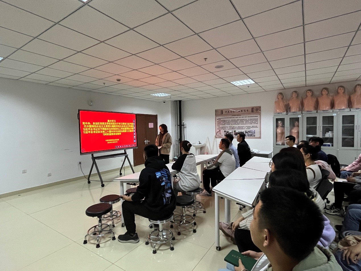 为深入领会习近平新时代中国特色社会主义精神,学习贯彻党的二十大精神,10月27日中医学院研究生党支部在新华校区综合实验楼903进行集中学习。本次集中学习由中医学院研究生党支部教师党员蔚博领学,党支部学生党员参与。