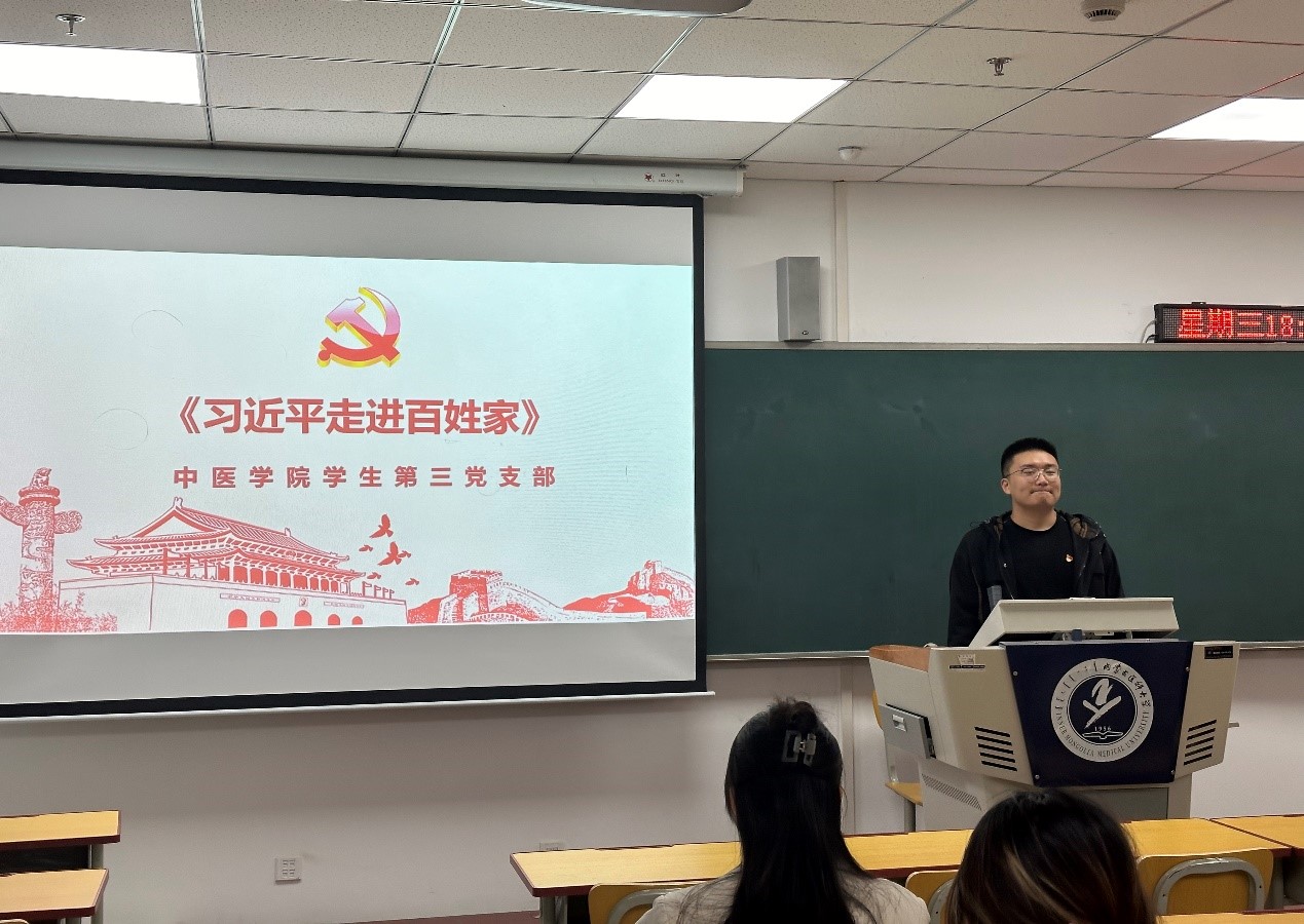 为深入学习贯彻习近平新时代中国特色社会主义思想和党的二十大精神,中医学院学生第三党支部于9月27日集中学习《习近平走进百姓家》。