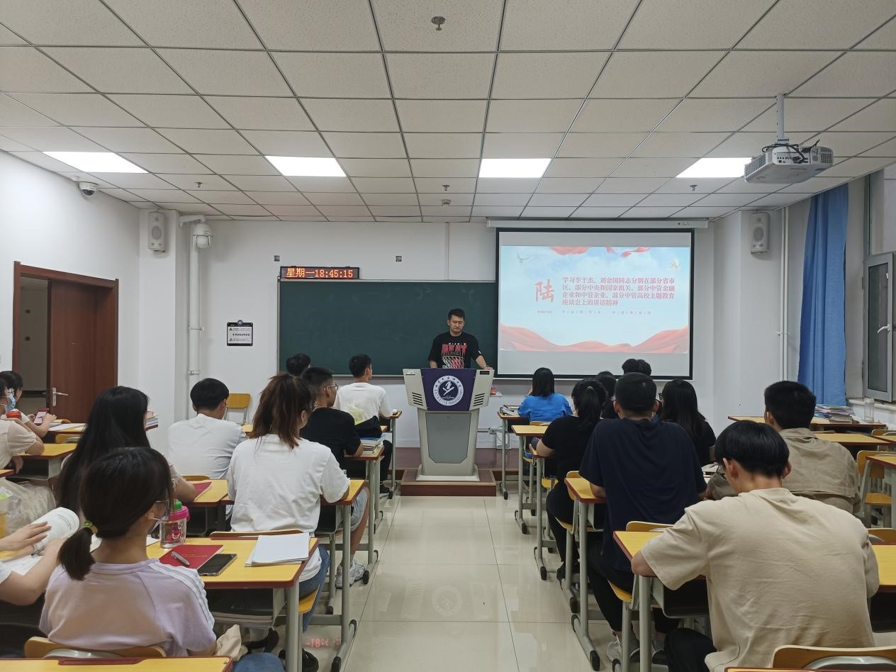 学生第二党支部集中学习李干杰、刘金国同志分别在部分省区市、部分中央和国家机关、部分中管金融企业和中管企业、部分中管高校主题教育工作座谈会上的讲话精神
