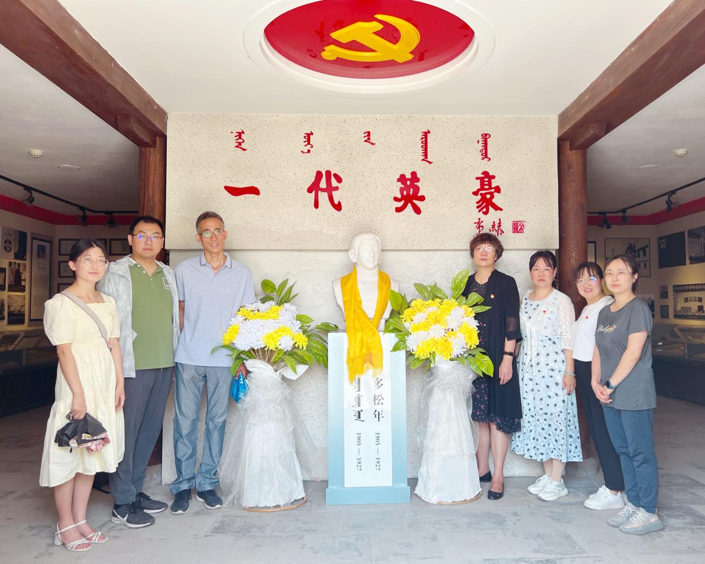 多松年烈士纪念馆是内蒙古自治区的重点文物保护单位、爱国主义教育基地。在讲解员的细致解说下,全体党员怀着无比崇敬的心情参观了多松年烈士珍贵的历史图片、文字纪实和遗物,边走、边看、边悟,深切地感受到了多松年同志从少年时代、求学蒙藏,到加入中国共产党、创刊《蒙古农民》,从苏联求学、组织革命斗争,到参加党的“五大”以及英勇就义短暂而又光辉的一生经历。多松年烈士在追求共产主义崇高理想的道路上奋斗不已,为民族解放事业做出了不朽的业绩,他勇敢坚韧的品格深深地激励和鼓舞着一代又一代人。
