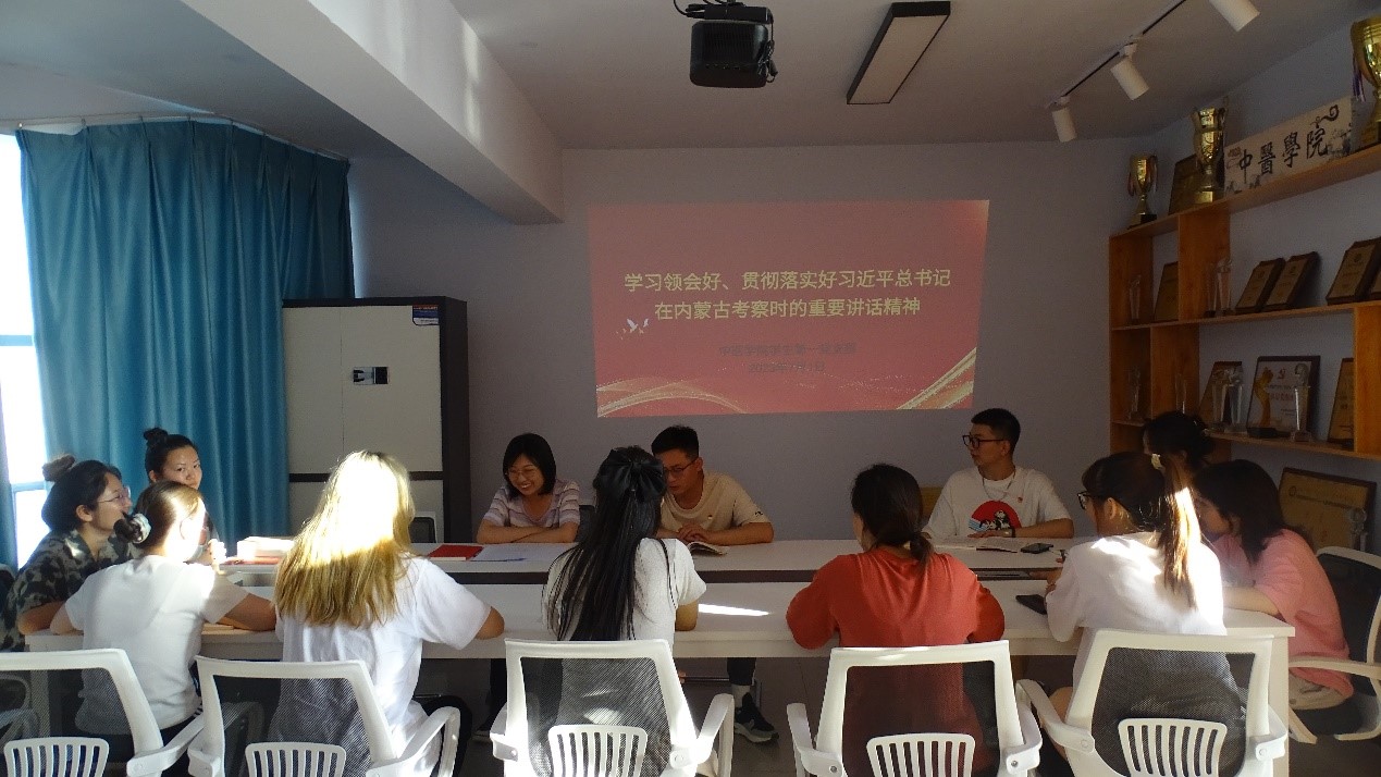 为扎实推进学习贯彻习近平新时代中国特色社会主义思想主题教育,7月1日,中医学院学生第一党支部组织党员召开学习会,专题学习习近平总书记在内蒙古考察时的重要讲话精神。