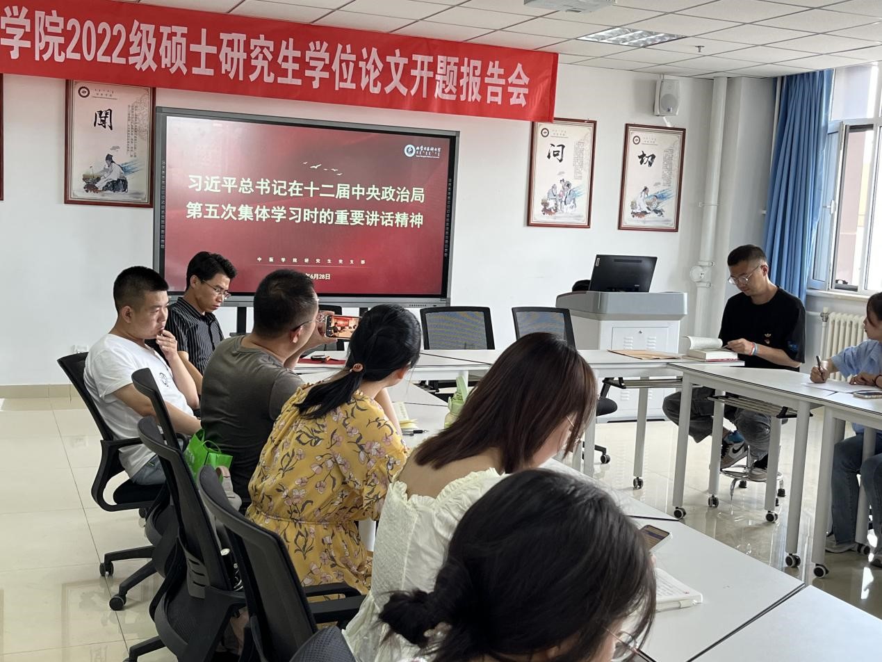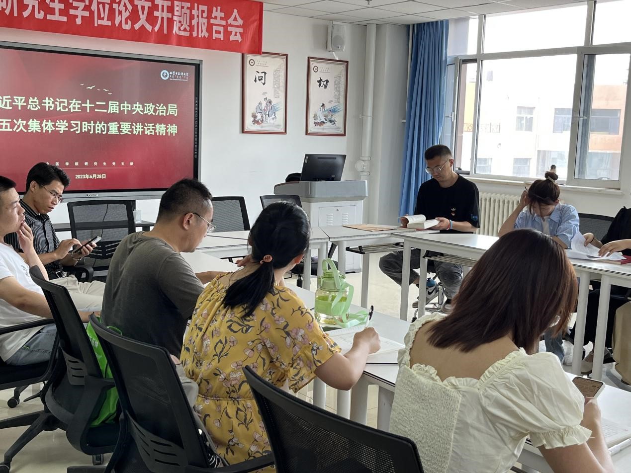 6月28日,中医学院研究生党支部专题学习研讨习近平总书记在中央政治局第五次集体学习时的重要讲话精神,全体成员参加学习。