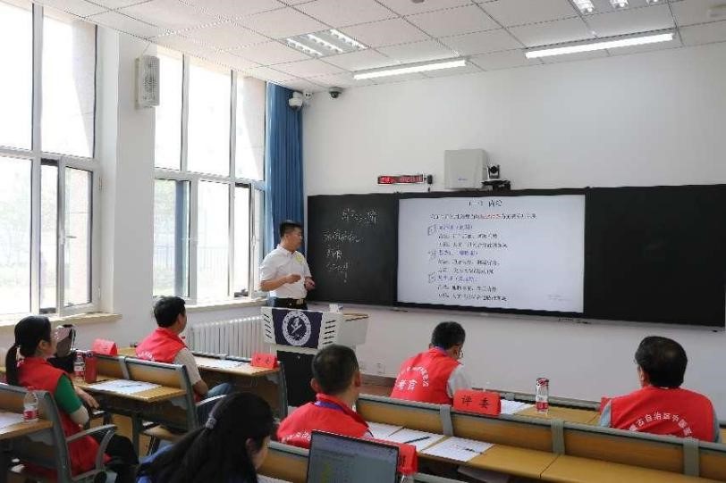 本次比赛中医学院主要承担裁判老师的遴选、比赛试题的拟制以及成绩的公布。其中课堂教学技艺大赛的评委主要来自内蒙古医科大学的教学督导成员与中医学院的副高以上专任教师。课堂教学比赛中,选手们以饱满的热情和积极的风貌,展示了一场生动而精彩的课程,充分体现出各位临床授课老师的教学能力;比赛中裁判们严谨专注一丝不苟,根据比赛选手的表现,给出了合理的评分。