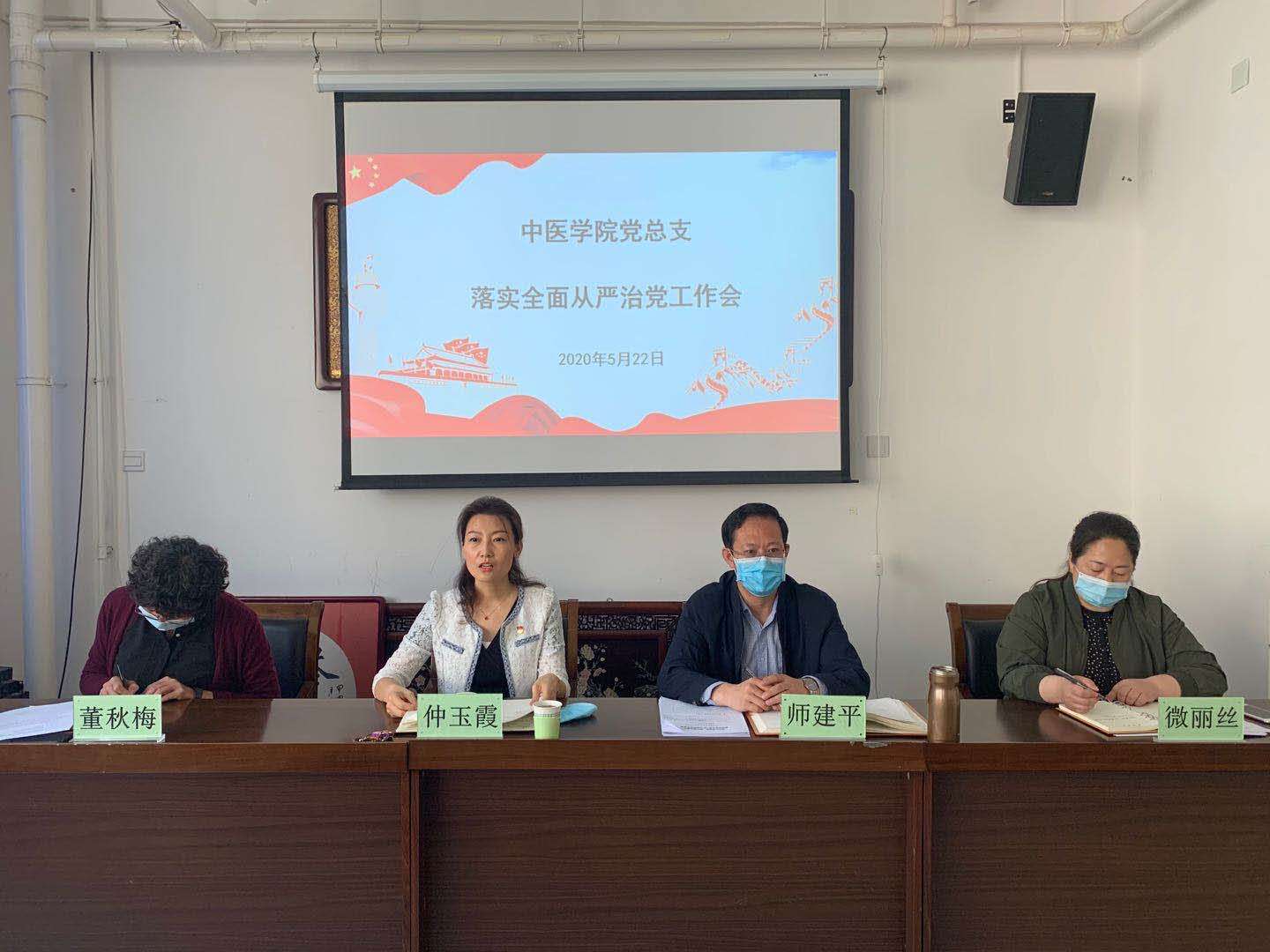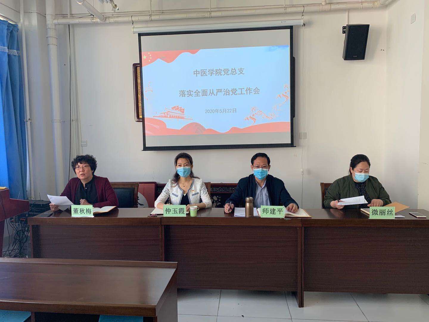 按照学校党委、纪委部署,5月22日上午,中医学院组织召开了落实全面从严治党工作会议,学校纪委委员、教育工会主席仲玉霞、学院党政领导、三办主任、各党支部书记及支部委员参加。会议由学院院长董秋梅同志主持。