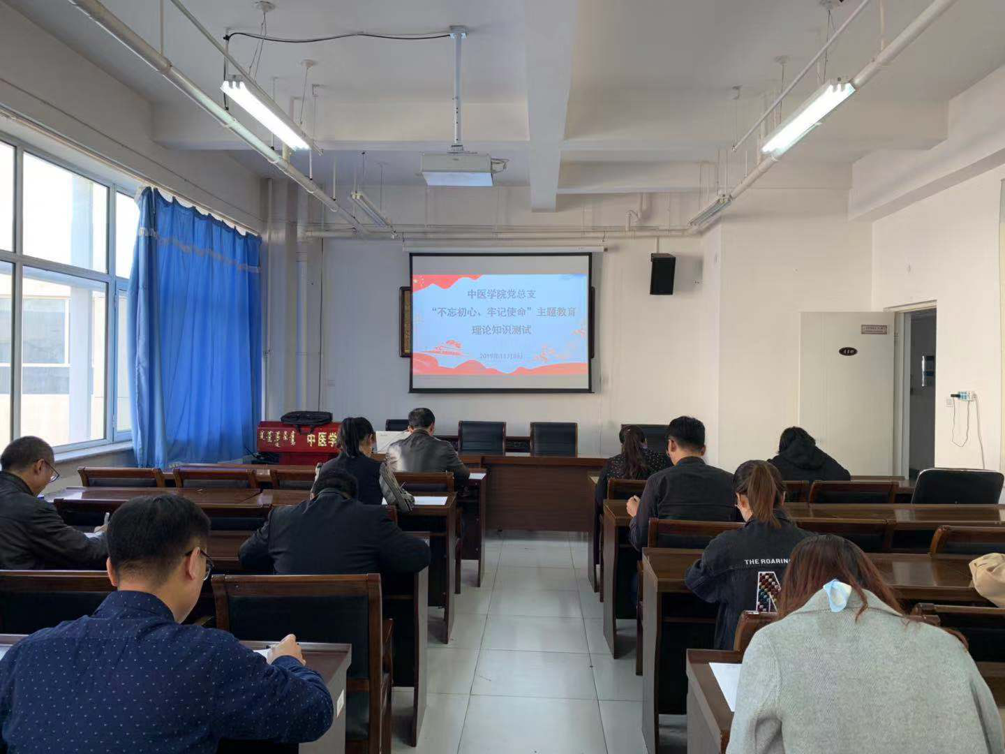 为扎实推进学院主题教育工作深入开展。11月8日上午10:30,中医学院党总支组织全体党员在G座410会议室进行了“不忘初心、牢记使命”主题教育应知应会理论知识测试。测试采取闭卷考试,学院党总支委员、院领导、各党支部书记和全体师生党员参加测试。