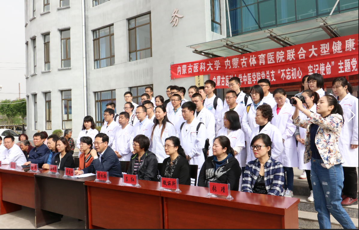 为贯彻落实党的十九大精神,进一步深化“两学一做”学习教育制度化、常态化,树立党员干部为人民服务的良好形象,5月12日内蒙古医科大学中医学院党总支40余名师生党员联合自治区体育局医院党员赴革命先驱乌兰夫同志的出生地土默特左旗塔布赛镇举行以“不忘初心,牢记使命”为主题的大型义诊党日活动。土左旗旗委常委、宣传部部长云丽琴同志,副旗长金晶同志出席了启动仪式。学校党委组织部组织科科长张瑾同志一同参加了活动。