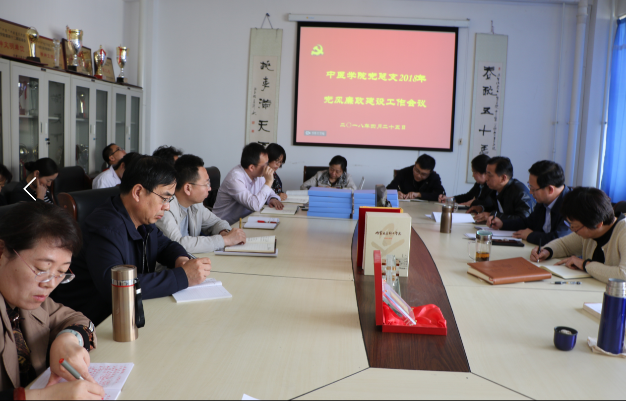 4月25日,中医学院党总支召开2018年度党风廉政建设工作会议,部署相关工作。学院党政领导、各科室、中心负责人参加会议。党总支书记师建平同志主持会议。