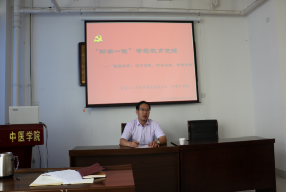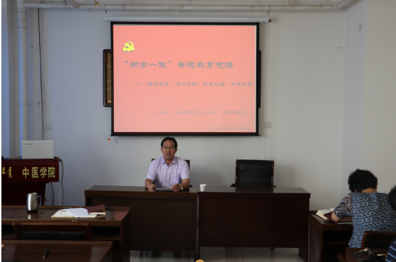 根据《内蒙古医科大学关于开展“学党章党规、学系列讲话,做合格党员”学习教育实施方案》(内医党发[2016]28号)的要求,结合学校党委委员、副校长毅和教授作的“两学一做”专题教育党课精神。中医学院党总支书记师建平同志于2016年6月29日16:00在金山校区G座四楼中医学院会议室作了“两学一做”专题教育学习党课。