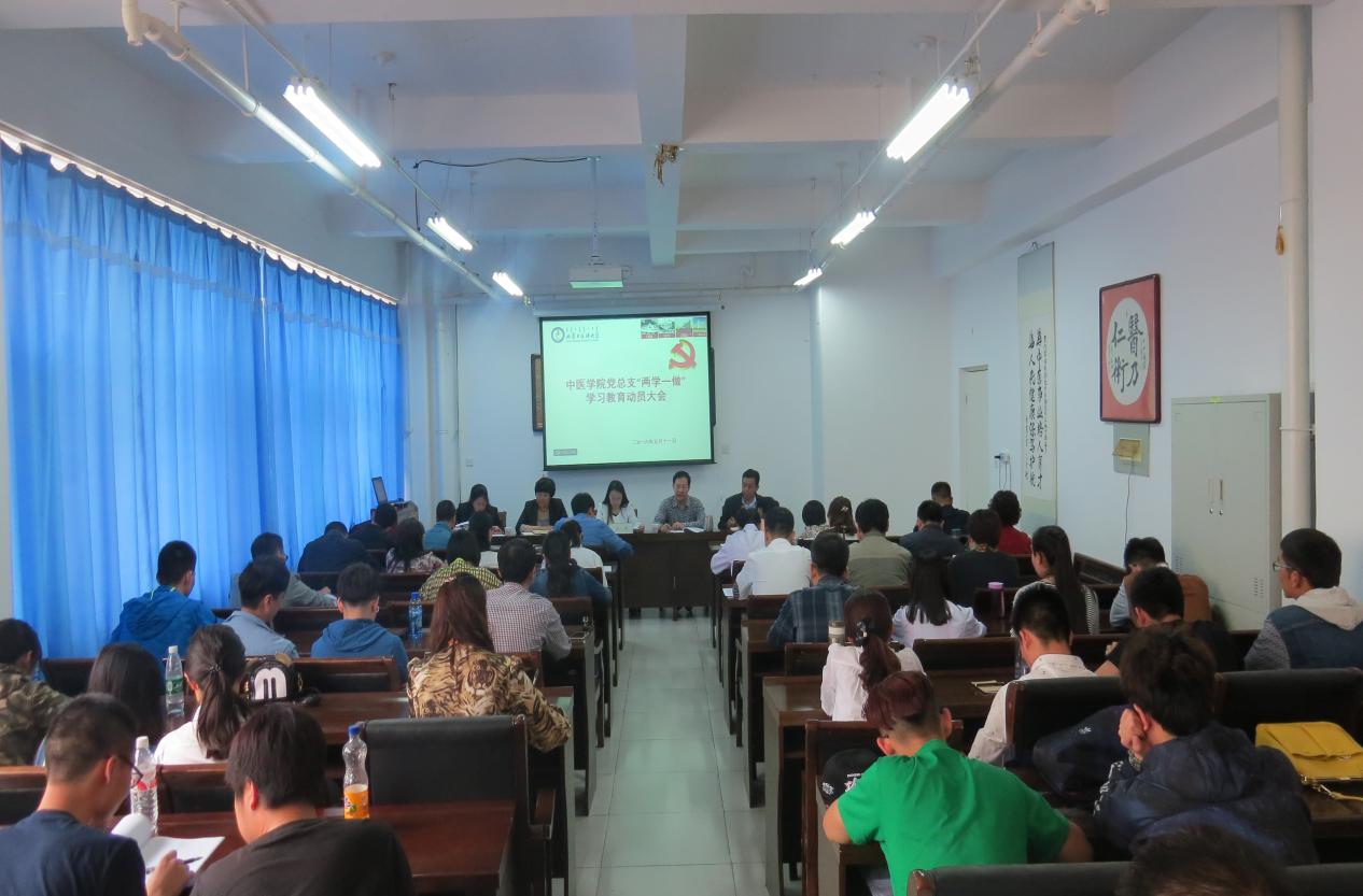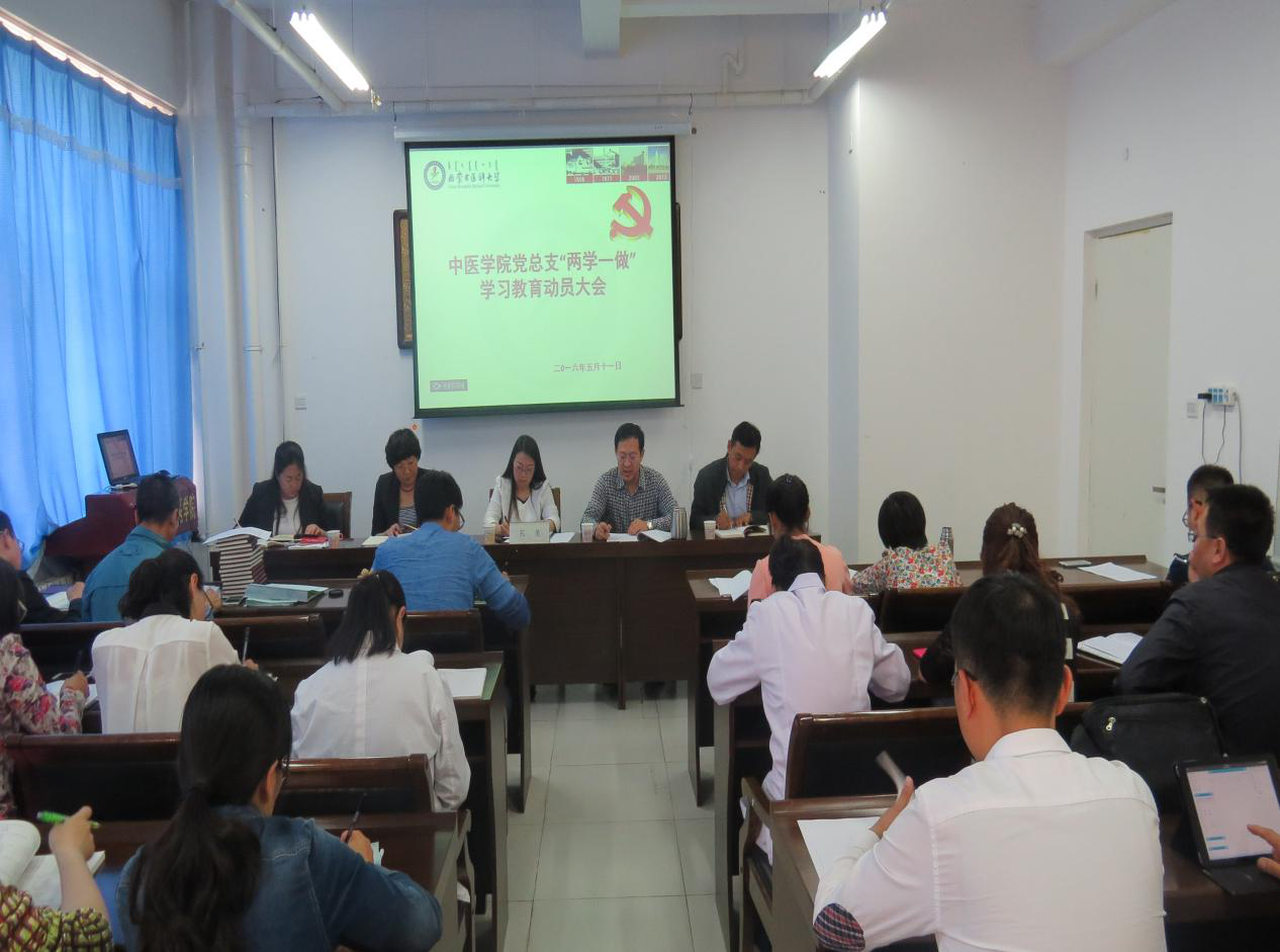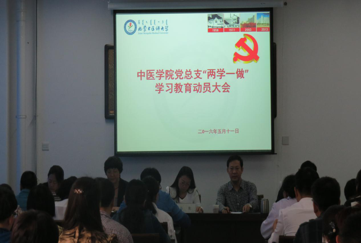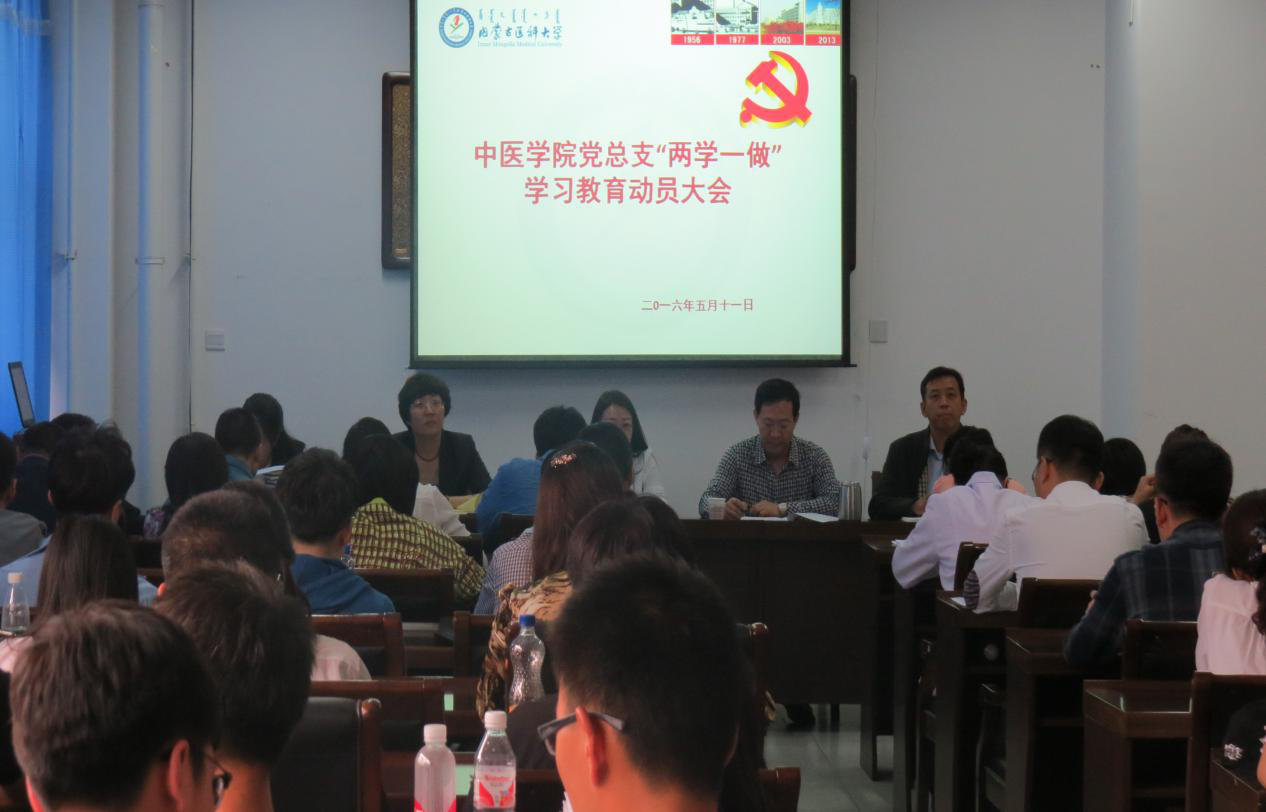 为深入贯彻落实《中共内蒙古医科大学委员会关于在全校党员中开展“学党章党规、学系列讲话,做合格党员”学习教育实施方案》,根据学校党委的统一部署,中医学院党总支于2016年5月11日下午在中医学院会议室召开了“两学一做”学习教育动员大会。学校“两学一做”学习教育督察组第四组副组长石美及我院五个党支部的全体师生党员参加了会议。