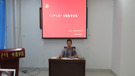 会上,师建平书记从五个方面进行了讲授。一是“三严三实”的内涵,“三严三实”是共产党人最基本的政治品格和做人准则,也是党员干部的修身之本、为政之道、成事之要,要求领导干部要强化使命担当,带头践行“三严三实”。二是“三严三实”的意义,“三严三实”体现着共产党人的价值追求和政治品格,明确了领导干部的修身之本、为政之道、成事之要,为加强新形势下党的思想政治建设和作风建设提供了重要遵循。三是中医学院存在的“不严不实”的问题及群众路线教育实践活动中整改落实的问题,总体上看,中医学院党员干部队伍作风的主流是好的,是一支讲大局、讲奉献,为民务实清廉、忠诚的队伍。但对照“三严三实”要求,还在一些方面存在着问题,在今后的工作中需逐步修正。四是推动践行“三严三实”制度化、常态化、长效化。五是做好“三严三实”专题教育活动。