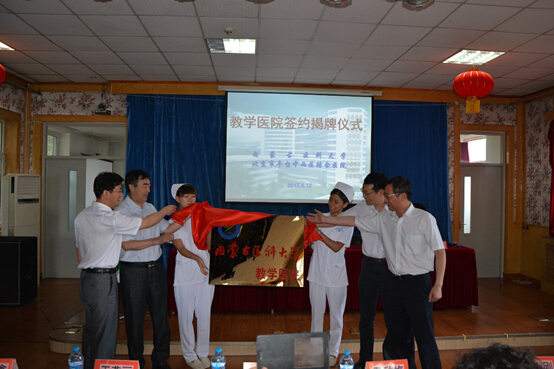 6月12日,北京丰台中西医结合医院--内蒙古医科大学中医临床实践教学基地签约及揭牌仪式在北京丰台中西医结合医院举行。内蒙古医科大学副校长刘志跃、内蒙古医科大学实践教学部主任王进文、内蒙古医科大学中医学院党总支书记师建平、内蒙古医科大学中医学院院长董秋梅、北京市中医药管理局科教处厉将斌处长、北京分台区卫计委肖立新副主任、北京丰台中西医结合医院党委书记宋雄英、北京丰台中西医结合医院院长卢守华等出席了仪式。