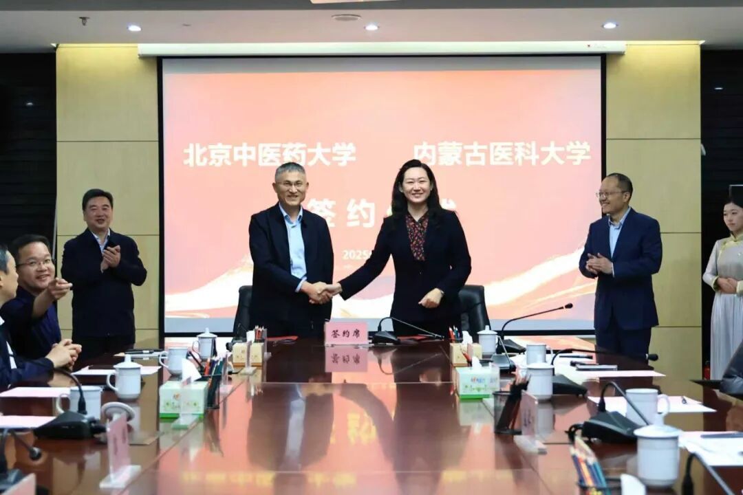 9月25日上午,北京中医药大学与内蒙古医科大学举行战略合作协议签约仪式。北京中医药大学党委副书记、校长唐志书,内蒙古医科大学党委副书记、校长张晨,内蒙古民族大学党委副书记、校长孟祥宏出席仪式并致辞。内蒙古医科大学校长助理洪宝林主持仪式。