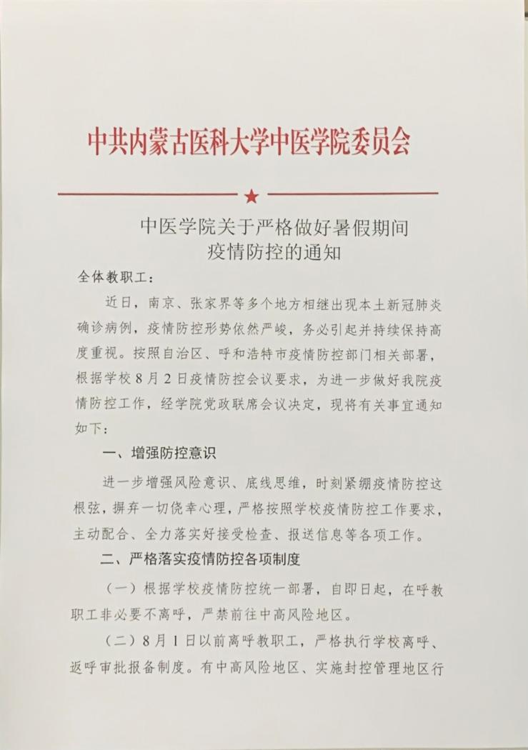 中医党发 中医学院关于严格做好暑假期间疫情防控的通知