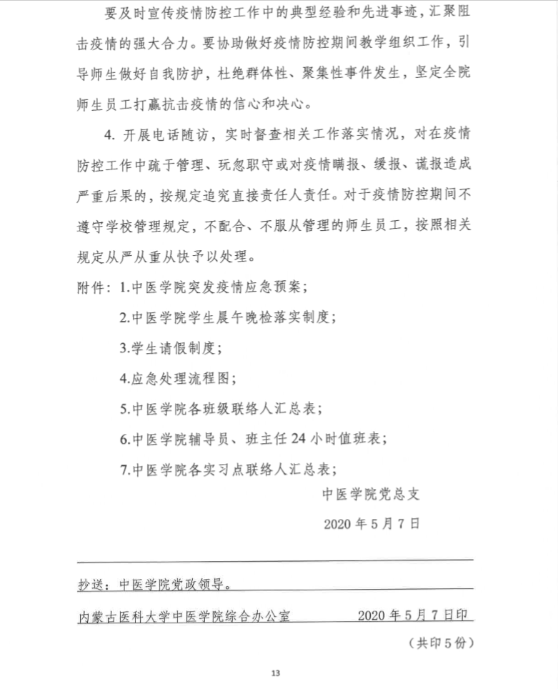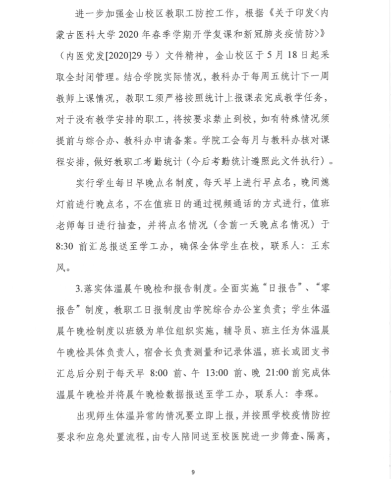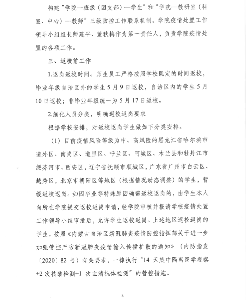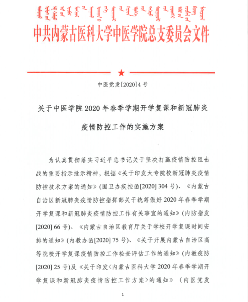 内蒙古医科大学关于2020年春季学期开学复课有关事宜的通知