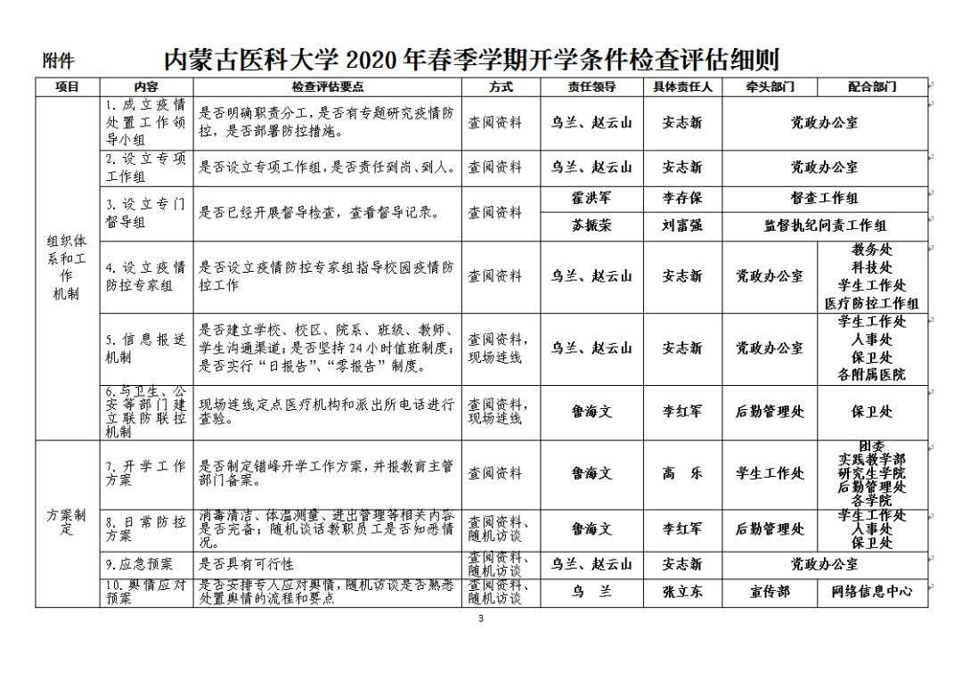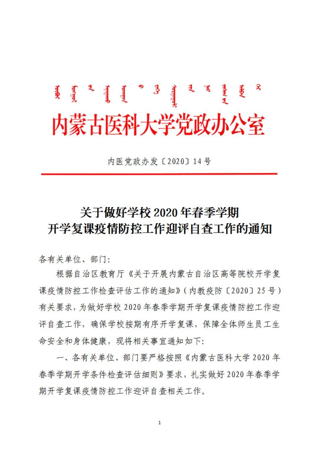 内蒙古医科大学关于2020年春季学期开学复课有关事宜的通知