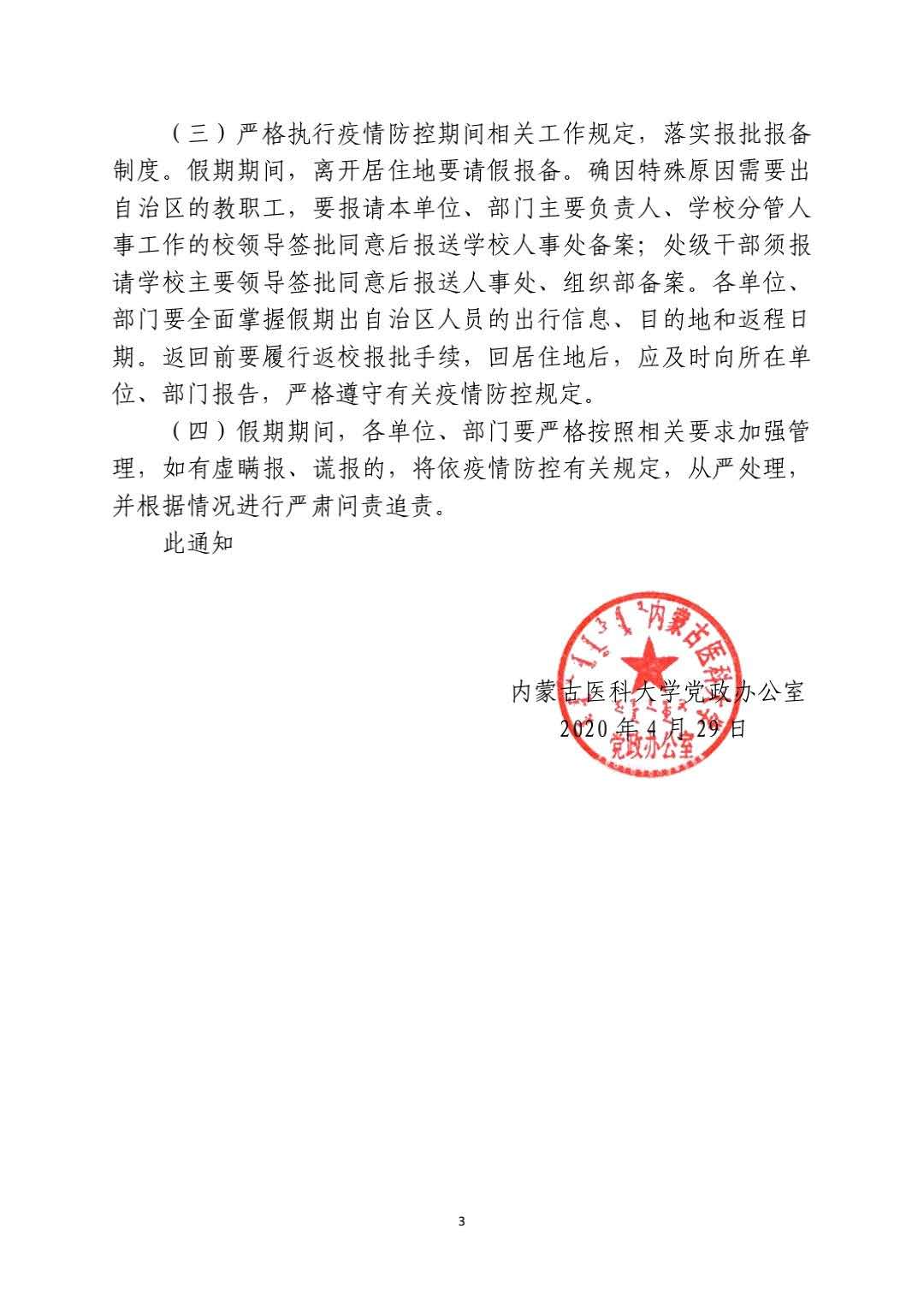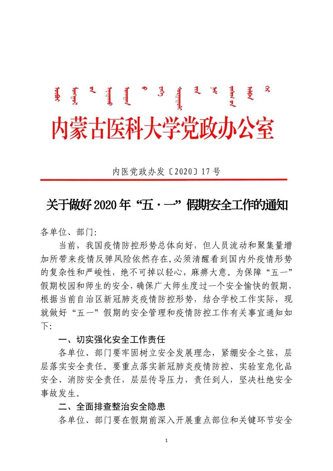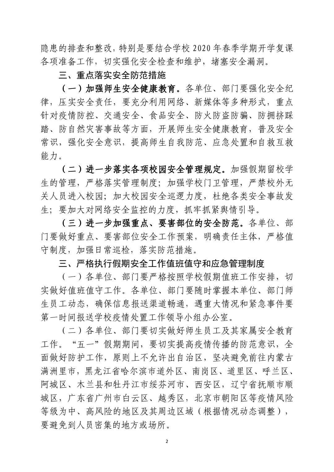 关于做好 2020 年“五·一”假期安全工作的通 知