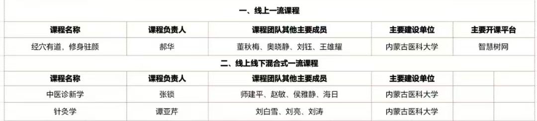 近日,教育部高等教育司发布了《关于第三批国家级一流本科课程认定结果的公示》,我院申报的3门课程成功入选,其中《经穴有道,修身驻颜》获评“国家级线上一流课程”,《中医诊断学》、《针灸学》获评“国家级线上线下混合式一流课程”。此次入选课程涵盖中医基础课程、临床实践课程等核心模块,充分体现我院在课程体系改革、教学模式创新、优质教学资源建设上的显著成效。